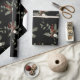 Modern Watercolor Winter Mistletoe Red Green leaves Black Background Wrapping Paper