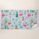 Modern watercolors tropical flowers & Flamingos Beach Towel