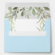 Modern watercolour greenery foliage blue envelope featuring delicate watercolour eucalyptus leaves on the inside. Designed by Thisisnotme©