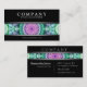 Stylish modern business card with a mostly black background. Between the silver coloured lines the details of a water lily flower mandala show, providing a bright pop of colour, making this contact card stand out from the crowd. Click customise to have more control over font choices and the use of space for text.