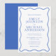 Modern wavy blue wedding invitation featuring a clean white center with bright blue typography and a soft wavy frame. This elegant design blends a fresh modern look with a classic feel, making it perfect for timeless, stylish weddings.