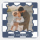 Modern minimal graphic check pattern navy blue wavy edge photo Christmas holiday party favour sticker. Bold on trend design. Part of a holiday collection.