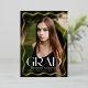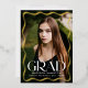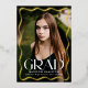 Celebrate your high school or college graduate with this elegant graduation announcement, featuring a full-bleed vertical photo framed by a luxurious gold foil wavy border. The bold white "Grad" lettering adds a modern touch, while the graduate’s name, school, and class year create a personalised look. The back showcases a horizontal photo with space for a custom message, making it the perfect way to share this special milestone with family and friends.