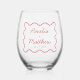 Modern Wavy Red Retro Squiggle Wedding Stemless Wine Glass