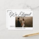 Announce your recent elopement with these announcement cards and let family and friends know your plans for a future celebration. Customise the photo to share the memory and personalise the date of your wedding, location and the Mr. and Mrs lastname. Modern Script for the words "We eloped" on the top.