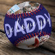 Let dad know how much he is loved with this modern photo collage baseball, featuring ten (10) photographs of your choice that can easily be downloaded from your phone or computer on a trendy navy blue background, the text - DADDY in the colour sky blue in bold text with elegant white calligraphy script tyopgraphy 'we love you' over the top.