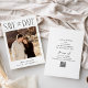 A modern, yet simple wedding save the date card featuring your favourite photo on the front. Add more info, plus a wedding website QR code on the back.