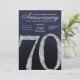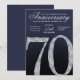 This modern anniversary invitation card showcases a bold diamond-style number seventy set against a deep navy blue background with luminous silver accents. The faceted crystal detailing adds contemporary sparkle, while clean lines, smooth gradients, and subtle light textures create a refined, upscale appearance. The modern navy and silver color palette delivers a timeless yet stylish feel, making this invitation ideal for hosting an elegant and memorable 70th anniversary celebration.