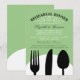 The design features black cutlery on a white plate with a mint green background and the mint green can be easily customised to any other colour of your choice.