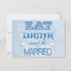 Doves with wedding bands on soft pastel blue background for RSVP.