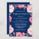 Modern Wedding Celebration Floral Wreath Navy Blue Invitation