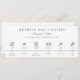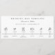 Modern minimalist, wedding day icons, timeline itinerary program. Features, rings, cocktail, bride & groom, dinner setting, music note and confetti icons. Template text lines to personalise times and titles of each icon.