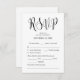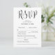 This is the beautiful Modern, Calligraphy, Romantic RSVP (Respond) Enclosure Card, in Black font, where you can edit, change colour and format it as per your design requirement, with meal options, reserved seats, number attending and song request option.