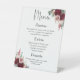 Modern Wedding Dinner Menu Burgundy Blush Floral Pedestal Sign