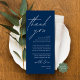 This is the Modern editable card, in minimalist script design, navy blue theme, Place Setting Thank You Cards. Share the love and show your appreciation to your guests, when they sit down at their seat and read this personalised charming thank you place setting card. It's a wonderful way to kick off your special day celebration!