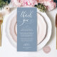 Introducing the perfect finishing touch to your wedding reception - our elegant Dusty Blue Wedding Thank You Place Setting Cards, with card title "Thank you" ! Designed to express your heartfelt appreciation for each guest's presence on your special day, these cards are the ideal way to add a personal touch to your dinner tables.