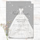 Soft and romantic, this bridal shower brunch invitation design features a white wedding gown centred on a pale silver grey background under a misty white transparent layer. A touch of sparkle adds a glamourous effect. Elegant, simple, and romantic. Created by Simply Farmhouse Press.