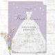 Soft and romantic, this bridal shower invitation design features a white wedding gown centred on a pale lavender purple background under a misty white transparent layer. A touch of sparkle adds a glamourous touch. Elegant, simple, and romantic. Created by Simply Farmhouse Press.