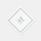 Simple, minimalist and chic wedding square paper cocktail napkin features a modern design with a double framed border in classic blue on a crisp white background. This modern simple design provides timeless, classic sophistication. Personalize the names which are completed in classic blue elegant script placed on a modern initial in a coordinating lighter shade of blue on a crisp white background. These are a perfect accompaniment for any wedding party or anniversary occasion! Be sure to see the collection link on this page to view all of the matching items! Please direct questions or custom color requests to invitationsuites@gmail.com.