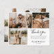 Budget, Modern, Elegant, Hand Lettered Wedding (3) Three Photo Collage Thank You Card. Stylish wedding thank you card template featuring three photo on the front and one photo on the back. With the text "Thank You" in a swirly hand lettered typography script font with swashes in black colour on white background. Little heart between the names. Add your custom name and thank you message. If you prefer to handwrite your note, just delete the sample text to make more space.