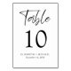 Modern wedding reception table number sign featuring "Table" in a chic script, the table number in elegant serif typography, and your names and your reception date in simple typography. Create each table number individually and add to your shopping cart one at a time, then check out once all numbers are in your cart.
