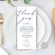Whether you're planning an intimate gathering or a grand celebration, our Wedding Thank You Place Setting Cards in modern script theme are the perfect way to express your gratitude and make your guests feel cherished. Order yours today and add a special touch to your happily ever after dinner!