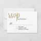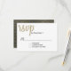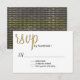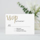 Modern stylish wedding response RSVP card done in white with large golden tan graphic script text reading rsvp, at the top, with the rest of the text in black. The back is done in a dark charcoal grey for a gold tone polka dot pattern. Personalise all the date field for your special day. Matching Love is in the Air wedding products are available.