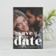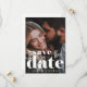 Create a lasting impression with modern save the date cards featuring a simple wedding photo template and bold typography design. The unique creative style combines minimalist elegance with a sleek black and white aesthetic. A QR code links guests to your wedding website, providing minimal details and information in a convenient format. Perfect for a basic contemporary look, these cards offer minimal sophistication, making them an ideal choice for stylish couples.