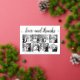 Modern script typography Wedding Thank You eight photo collage gold foil card with the text "Love and Thanks". On tha back there is a gold and white pattern with swirls and your photo.