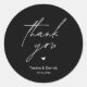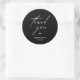 Modern Wedding minimalist Thank You Gifts Classic favor Round Sticker, in romantic script, cute little heart, with bride and groom signature and wedding date, in black and white theme.
