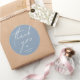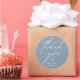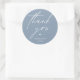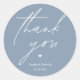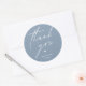Modern Wedding minimalist Thank You Gifts Classic favor Round Sticker, in romantic script, cute little heart, with bride and groom signature and wedding date, in dusty blue theme.