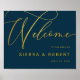 Wedding Welcome poster with modern FAUX gold foil script text. The word "welcome" is an IMAGE produced to look like it has a metallic foil finish, but it is printed in flat ink and cannot be edited. It can be resized to fit your poster size, and all other text can be fully edited. Pick your size (shown on 10 x 8) and customise the text, fonts, colours and layout. Recommended semi-gloss or premium gloss finish.
