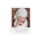 A simple modern birth announcement to share the news of your newborn baby. The gender neutral card is perfect for your baby boy or girl . It features a photo on the front and welcome and is personalised with baby's name, birth date, birth stats and a personal message from Mum and Dad