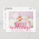 Modern Welcome New Baby Announcement Postcard Hot Pink