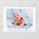 Modern Welcome New Baby Announcement Postcard Blue