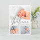 A simple and elegant modern birth announcement featuring a 3 photo collage of your newborn overlayed with "Welcome" in a stylish script. Add your baby's name, birth date and birth stats. On the back, add another photo and a personalised message.