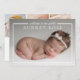 Share your joy with this modern newborn baby birth announcement. The front side features one large photo with "welcome to our world" in crisp white plus baby's first and middle name in a modern white text. The back side features a three photo collage and all the important details including baby's name, birthdate, birth stats and parent's names in grey type. Easily customised with your own photos and text.