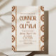 A modern western wedding invitation featuring warm neutral tones and bold southwest-inspired patterns. Perfect for ranch, desert, or outdoor weddings with a semi-formal western feel. Available as professionally printed invitations or a convenient digital file for easy sharing.