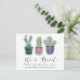 Let your friends and family know your new address with this modern 'Cactus' announcement postcard. This design features 3 potted cactus plants. Original artwork created for you using digital watercolor. The large 'Home Sweet Home' text creates a cool and overlay, contrasting uniquely with the artwork. Fully customisable text, very simple to edit with your personal details.