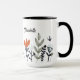 Modern Whimsical Floral Butterfly Personalised Name Coffee Mug features modern and whimsical botanical flowers and greenery with a cute butterfly. Personalised with your name in elegant black hand lettered calligraphy script. Perfect for gifts for Christmas, holidays, birthday, Mother's Day, teacher appreciation, grandmother, best friends and more. Designed by ©Evco Studio www.zazzle.com/store/evcostudio