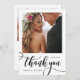 Modern Boho Whimsical Chic Huge Gold Calligraphy Script 2 Photo Wedding Thank You Card. Stylish wedding thank you template featuring a vertical photo on the front with the text "Thank You" in a whimsical swirly hand lettering typography swash tail font brush script in black and white. At the reverse side pre-made thank you message and one photo. Easily to personalise your name and thank you message. If you prefer to handwrite your note, just delete the sample text to make more space. If You need help or matching item, please contact to me!