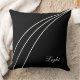 Modern white abstract wavy lines on silver black Throw Pillow. Simple yet elegant design matches most colours. Text calligraphy can be personalised.