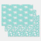 Modern White and Aqua Flowers and Leaves Wrapping Paper Sheet
