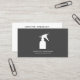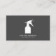 Modern trendy white and dark grey business card designed for a commercial or residential services for cleaning, housekeeper, maid service, or janitorial supplies. Design featuring of white cleaning spray icon. Customize the front with two lines of custom text on a dark grey background, and add your full contact details to the back and social media details. Trendy chic modern design.