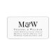 Modern Black White Monogram bride and Groom Address Labels. Beautiful bold black and white design with modern typography and couple's initials. Timeless classic black text printed on white. Personalise with the bride and groom's names and the RSVP postal address. All of the sample text, fonts, and colours may be adjusted as you wish with tools provided within Zazzle's personalisation and customisation menus.