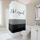 This modern shower curtain is designed with stripes in colours of white, grey and black and is personalised with name in elegant black script letting. This design goes great as a neat refreshed look to bathroom decor or simply if you are thinking of giving your bathroom an updated face lift.