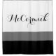 Modern White Black Grey Striped Monogram Script Shower Curtain