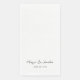 These modern personalised wedding paper guest towels feature a hand lettered black calligraphy script with your names and wedding date on a simple white background. Designed by artist Susan Coffey.