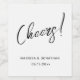 These elegant custom wedding wine bottle labels feature a typography design of black calligraphy script with your names and wedding date to personalise on a simple white background with the word "Cheers!:. Best of wishes for your wedding and marriage! Designed by Susan Coffey.