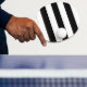 Ping pong paddle with white and black stripes. Customisable. A modern take on a stripe design, it is perfect for the ping pong player in your life.